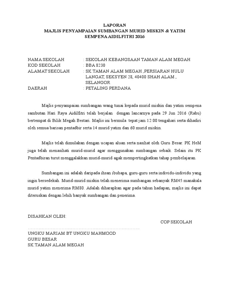 Contoh Laporan Majlis Hari Raya Peringkat Sekolah